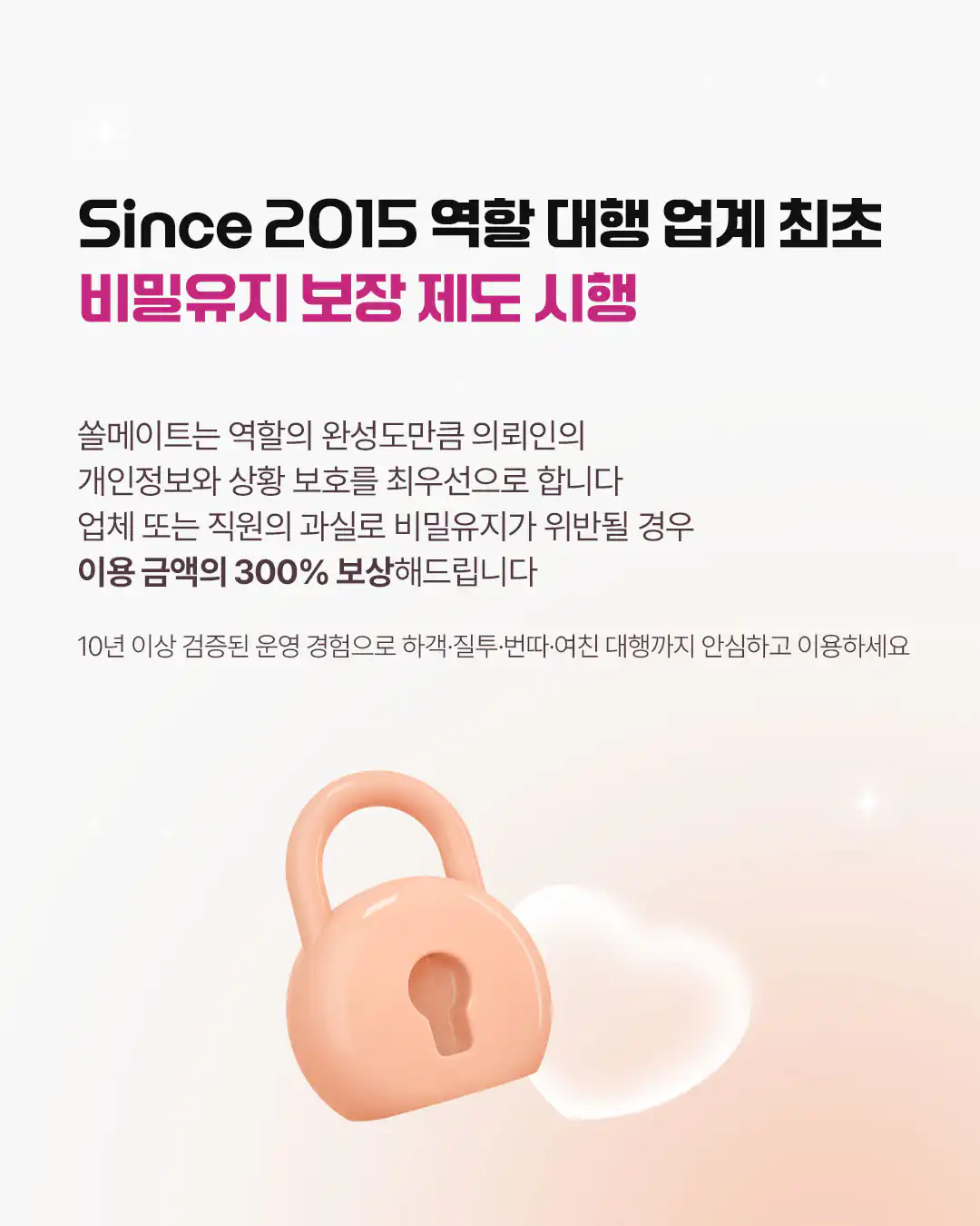 4. 메이트에게 불쾌감을 주는 언행/성희롱/성추행시 대행은 중단되며, 전체 비용은 환불되지 않습니다.